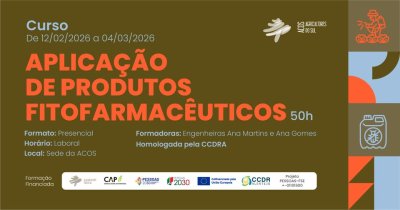 A ACOS VAI REALIZAR DE 12 DE FEVEREIRO A 04 MARÇO DE 2026, O CURSO DE APLICAÇÃO DE PRODUTOS FITOFARMACÊUTICOS NA SUA SEDE, COM DURAÇÃO DE 50 HORAS EM HORÁRIO LABORAL.