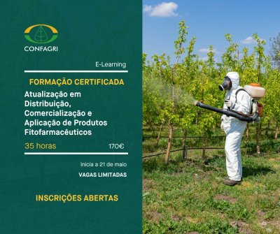 A CONFAGRI VAI REALIZAR UMA ACÇÃO DE FORMAÇÃO PARA TÉCNICOS " ATUALIZAÇÃO EM DISTRIBUIÇÃO, COMERCIALIZAÇÃO E APLICAÇÃO DE PRODUTOS FITOFARMACEUTICOS COM INICIO A 21 DE MAIO DE 2026, E DURAÇÃO TOTAL DE 35 HORAS EM REGIME E-LEARNING.