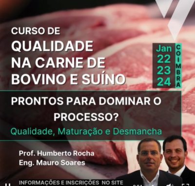 A FARMIN VAI REALIZAR UM CURSO DE QUALIDADE NA CARNE DE BOVINO E SUINO NOS DIAS 22,23 E 24 DE JANEIRO DE 2026 EM COIMBRA.PARA MAIS INFORMAÇÕES: https://www.farmin-trainings.net/courses/qualidade-carne |